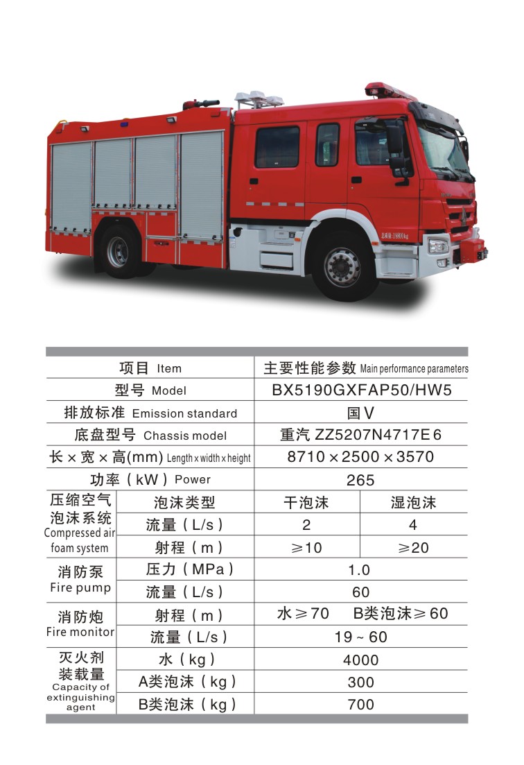 BX5190GXFAP50/HW5 城市主戰(zhàn)消防車